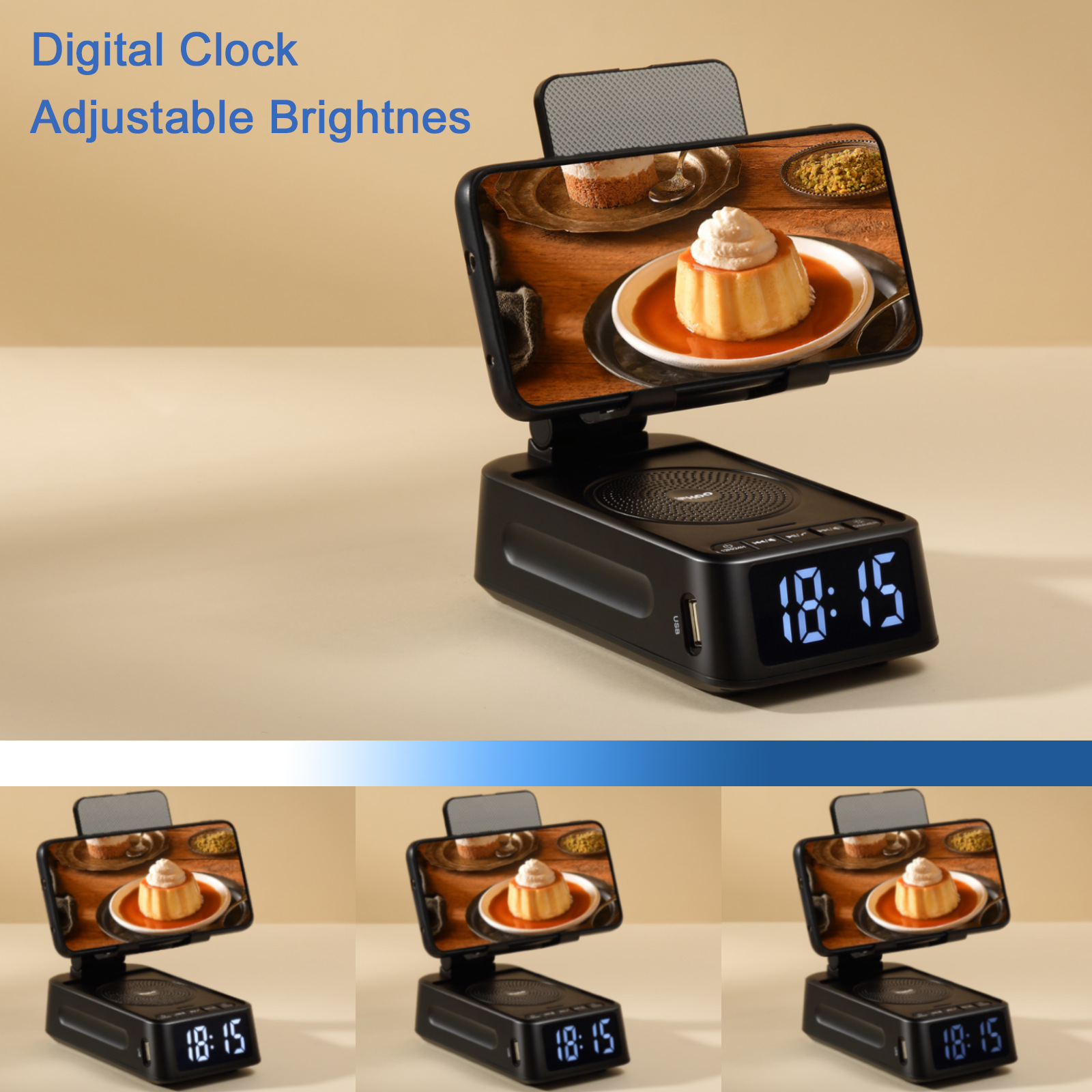 CellPhone Stand with Bluetooth Speaker, Phone Holder with Charger (5000 mAh) HD Surround Sound for Desk